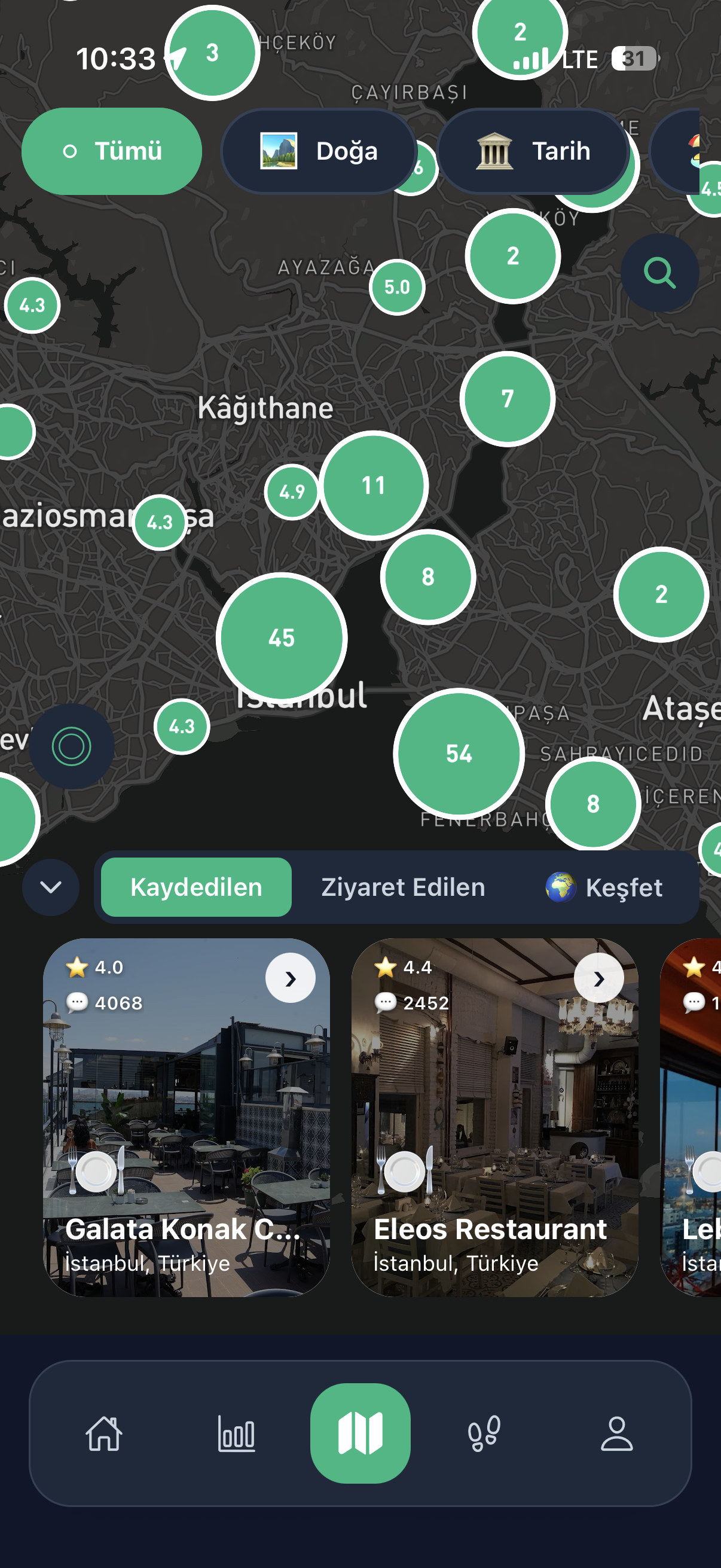Kaydettiğin, ziyaret ettiğin ve diğer kullanıcıların mekanlarını haritada gör. Kategoriye göre filtrele, yakınındaki mekanları keşfet, gideceğin yere hızla karar ver.